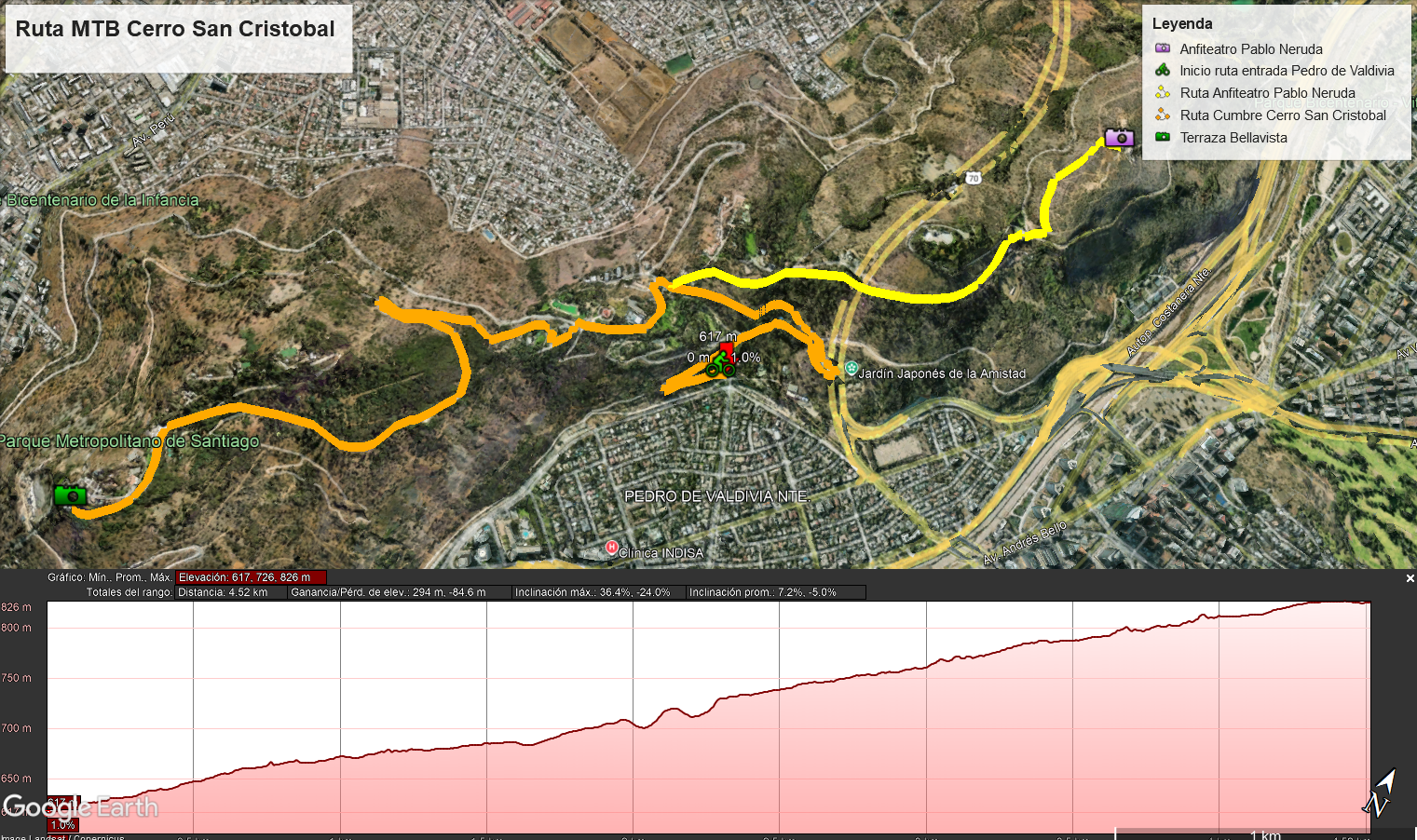 Los senderos tienen un ancho aproximado de 1 metro y ofrecen diferentes niveles de dificultad para aquellos que practican el XC (ciclismo de cross-country) y el MTB tradicional con marco rígido y suspensión. Estos senderos serpentean alrededor del Cerro San Cristóbal, brindando vistas panorámicas de 360° de la ciudad, rodeados de vegetación, bosques y flores de temporada.